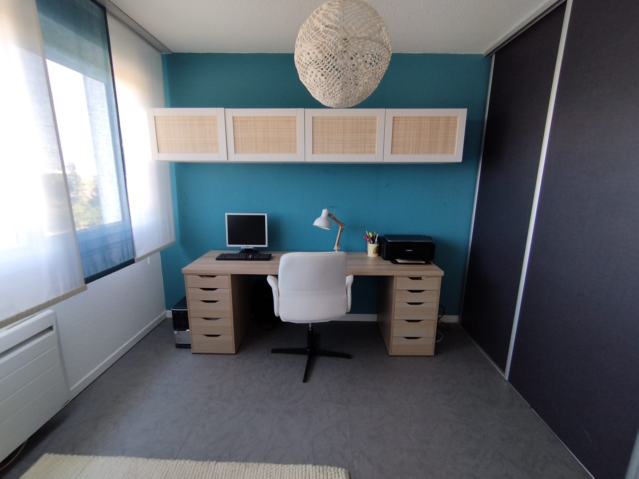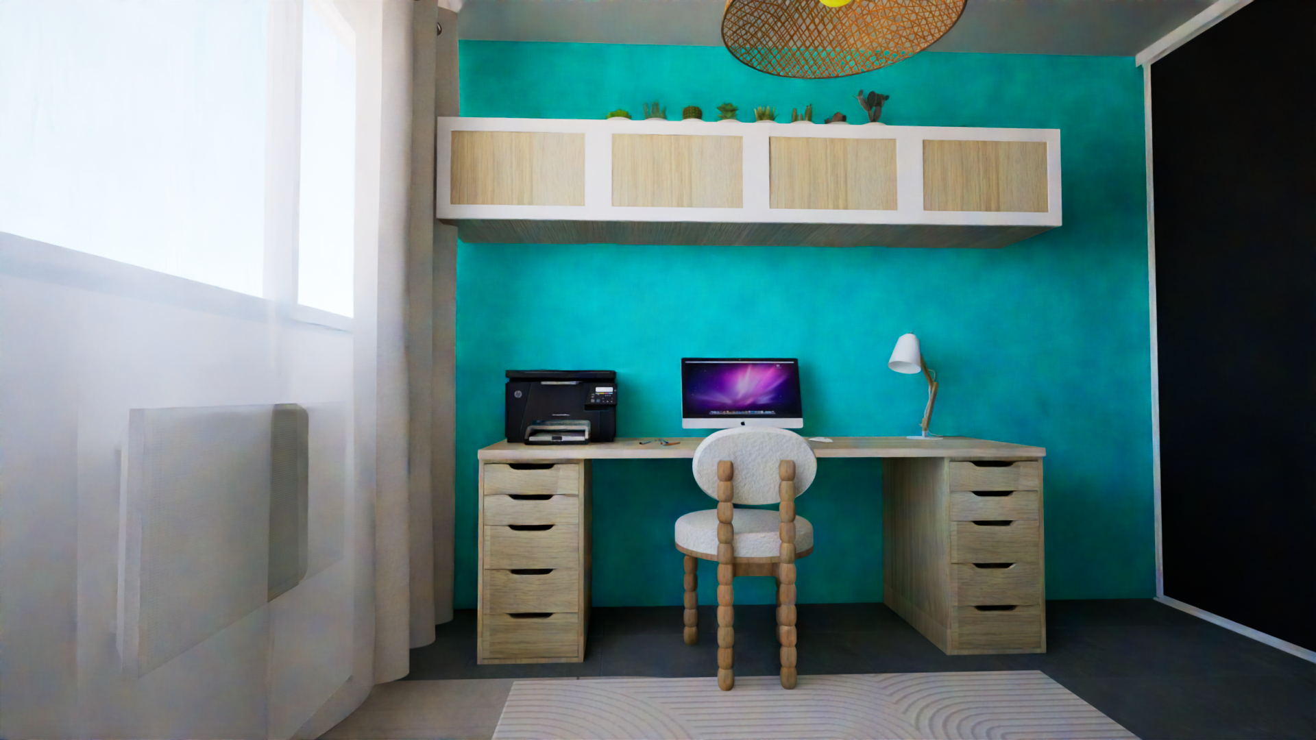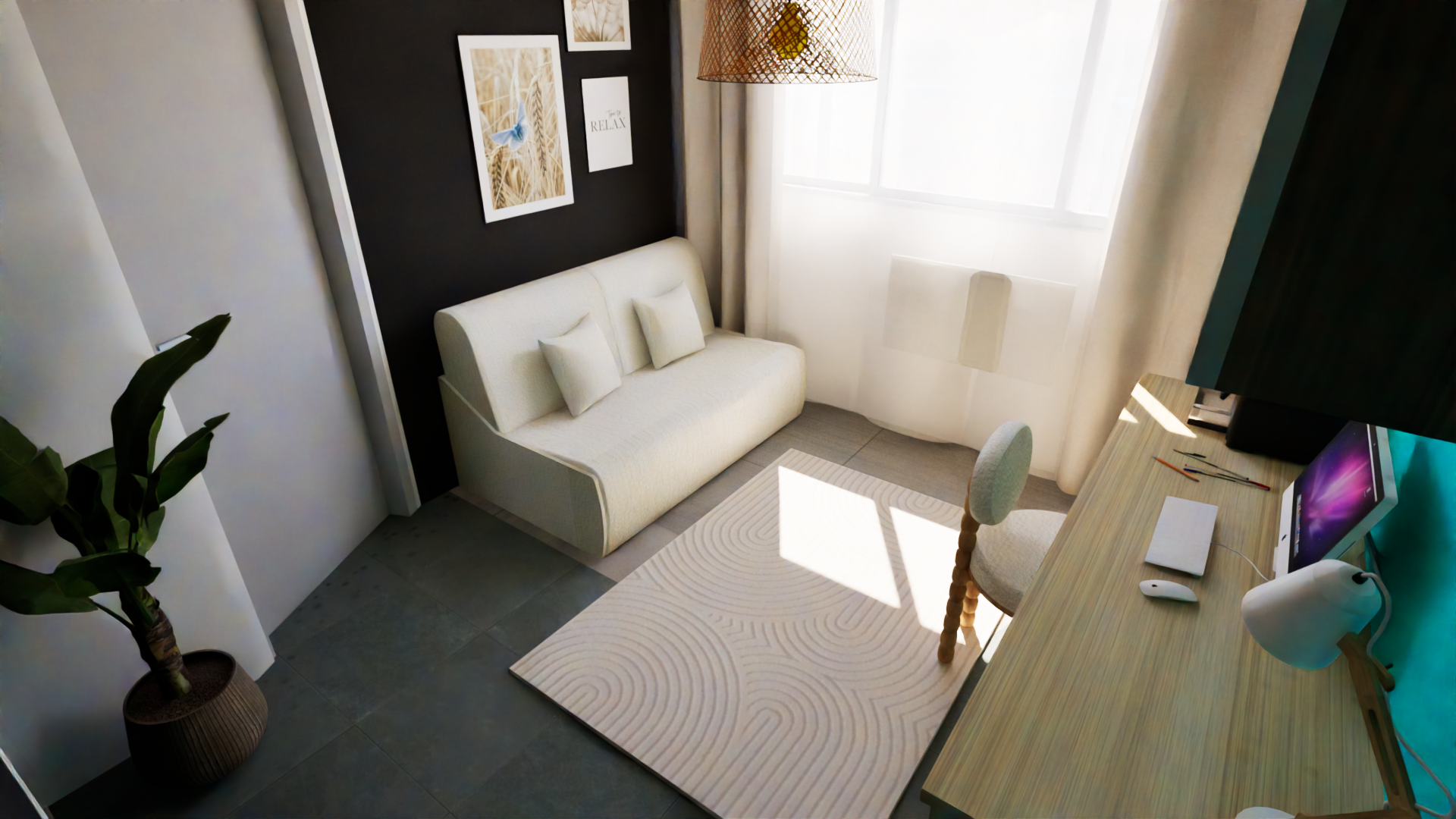 Ma cliente m’a contactée pour redonner vie à son bureau situé dans son logement à Lyon. Cet espace avait besoin d’un nouvel aménagement, mais avec des contraintes précises : conserver les couleurs déjà en place afin d’éviter de gros travaux, optimiser les rangements, et garder un couchage deux places d’appoint. Comme beaucoup de mes clients, elle avait du mal à imaginer une nouvelle configuration. Elle voulait un bureau plus fonctionnel et agréable, tout en gardant son côté multifonction.